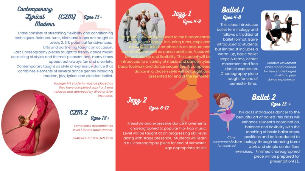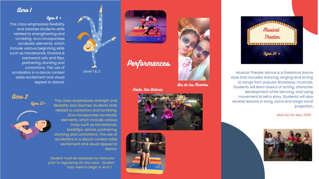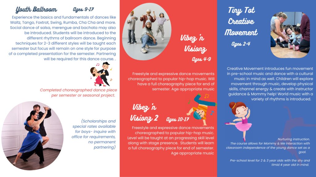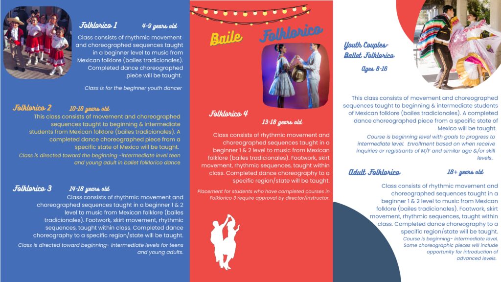 A fabulous time to begin a new activity for you and the children! Leap into dance with new dance courses to include a new classes for adults in folklorico, flamenco, Spanish classical, and ballet/dance conditioning. Let's not forget the new acro-dance course!